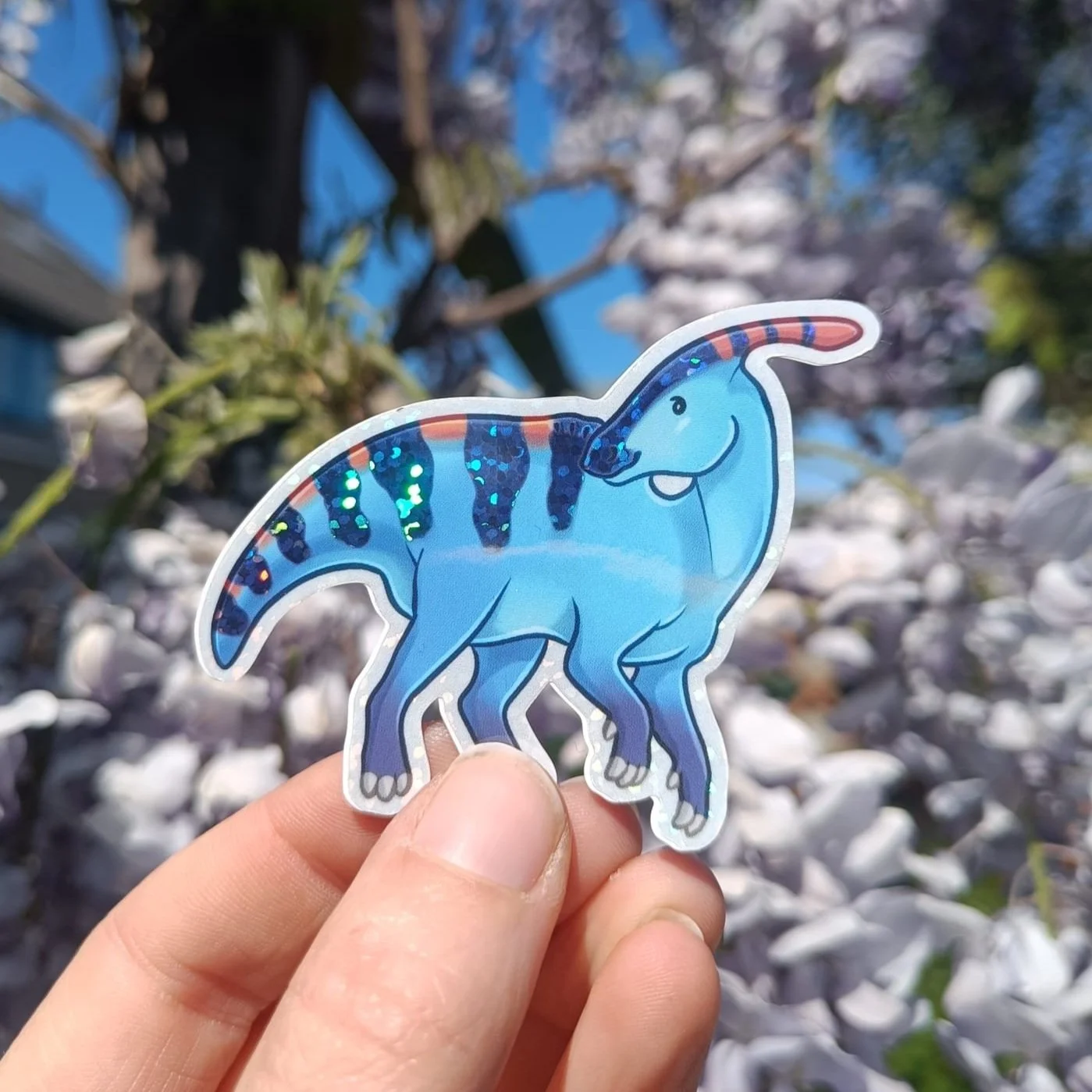 The sticker is made of vinyl and glitters in the light! Itâs 5,3 Ă 7 cm and has been known to survive the dishwasher multiple times (source: accidentally tested on my lunchbox :))) but best not to push it! ).